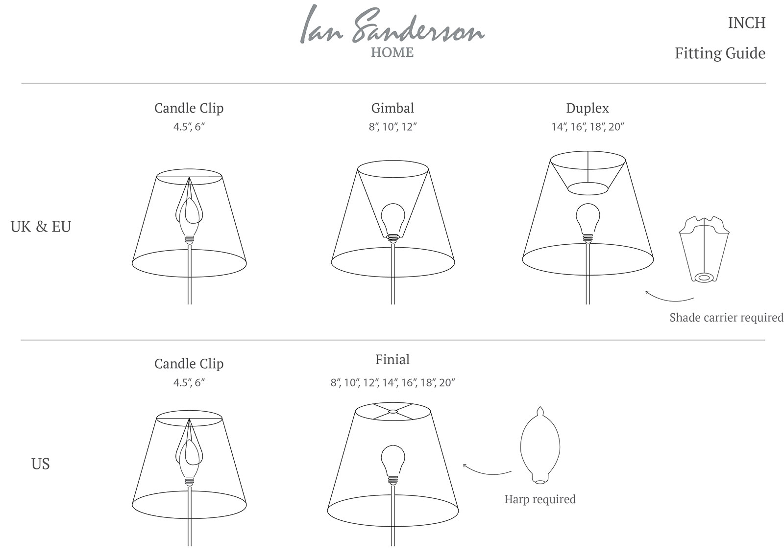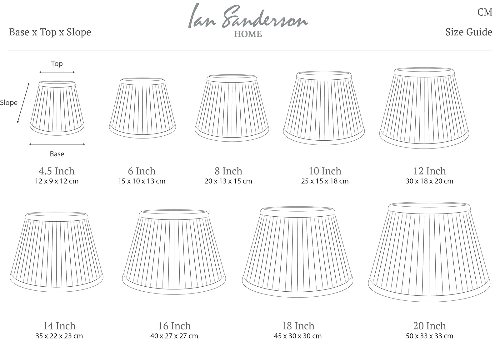 Lampshades: Returns of lampshades will be accepted providing they are in their original packaging (including cellophane wrapping which has not been removed), unused and in a fully resalable condition. You must inform Ian Sanderson of your intention to return goods within 14 days of receipt. Cost and responsibility of the return must be covered by the customer. Bespoke lampshades are non-refundable unless faulty. Please note that device screens are not representative of colour, therefore we recommend using our sample service prior to purchasing a lampshade.