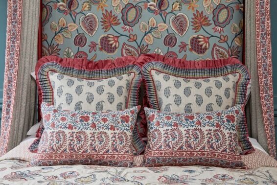 Stitch & Block is a romantic collection of decorative fabrics which brings together block print & embroidery; Mallow Border, an Indian hand block print, Naboyka, a block-inspired print design and the intricate beauty of embroidered fabrics, Shiraz, Pomona and Persian Daisy.