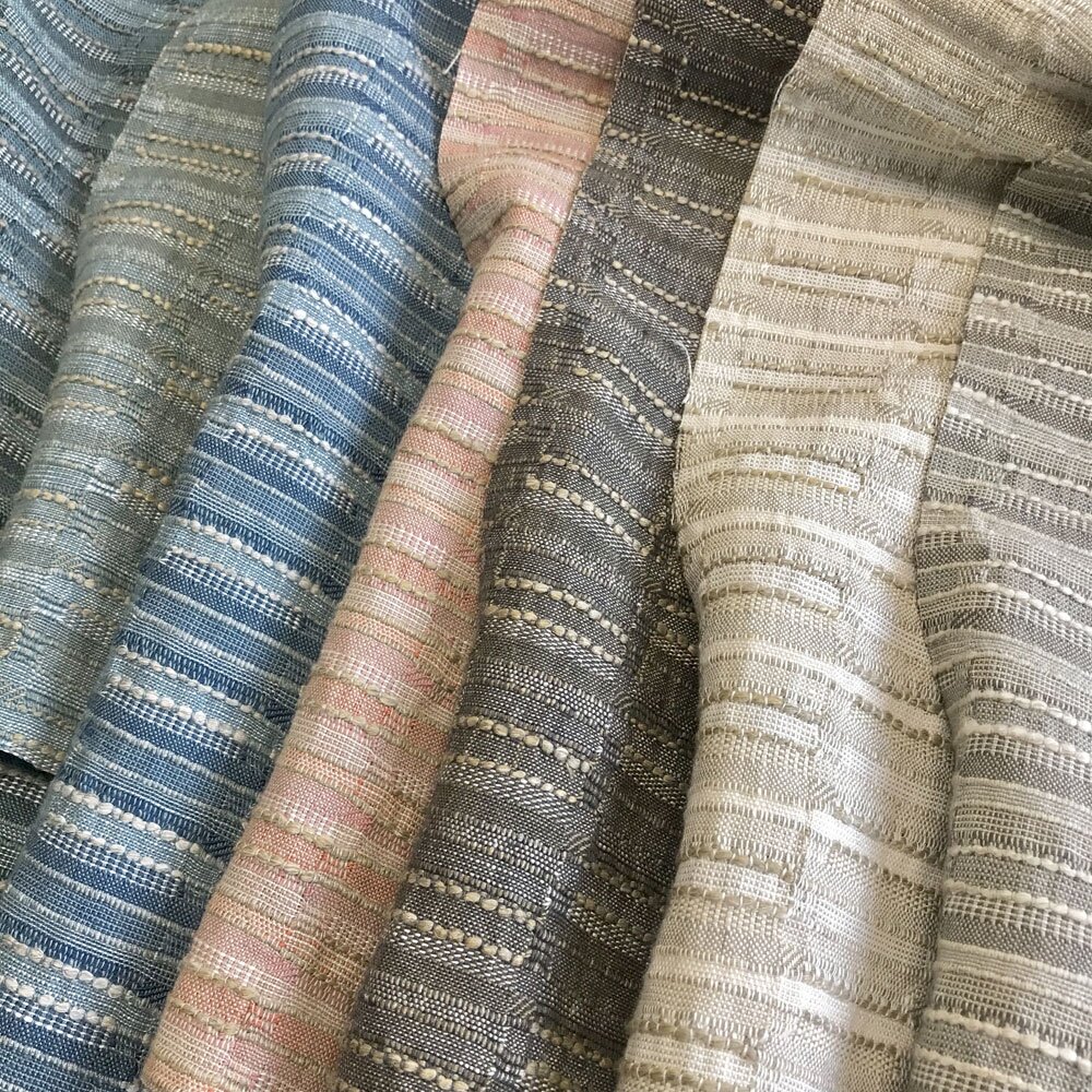 Horizontal blocks of texture in linen and viscose layer up to make a design perfect for blinds, drapes and cushions