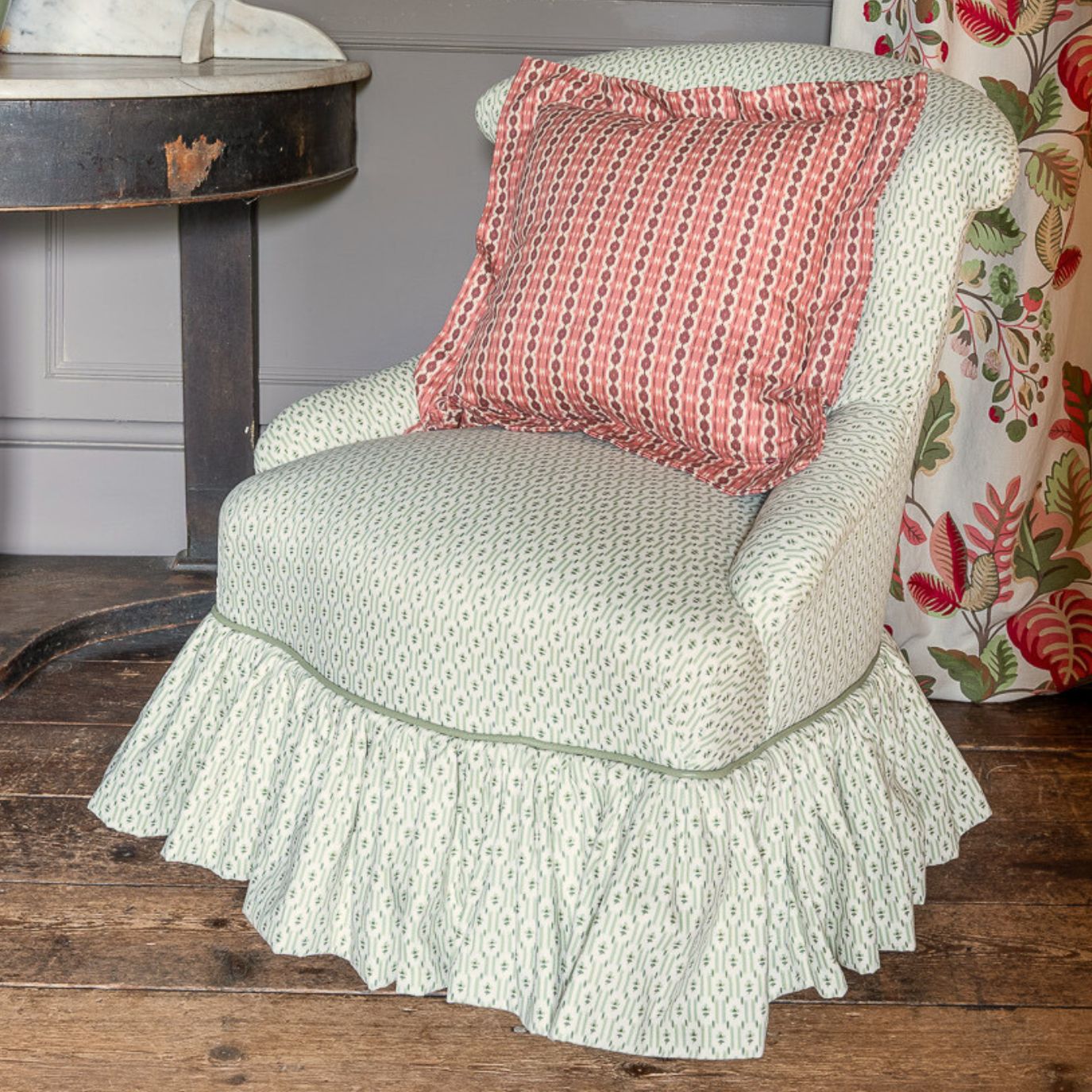 A delightful, structured ditsy floral, Nettie was originally discovered on a well-worn apron tucked away at the bottom of a linen drawer. Reimagined for interiors, this charming design retains its vintage appeal while offering a fresh, tailored look. Nettie has the perfect weight and texture for upholstery, cushions, and other soft furnishings, bringing character and subtle pattern to any scheme.