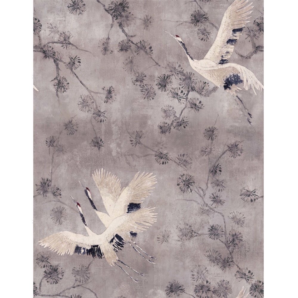 An elegant design featuring graceful cranes taking off into the sky amongst delicate pine trees. Homeward Bound adds feature and timeless calm to any scheme.