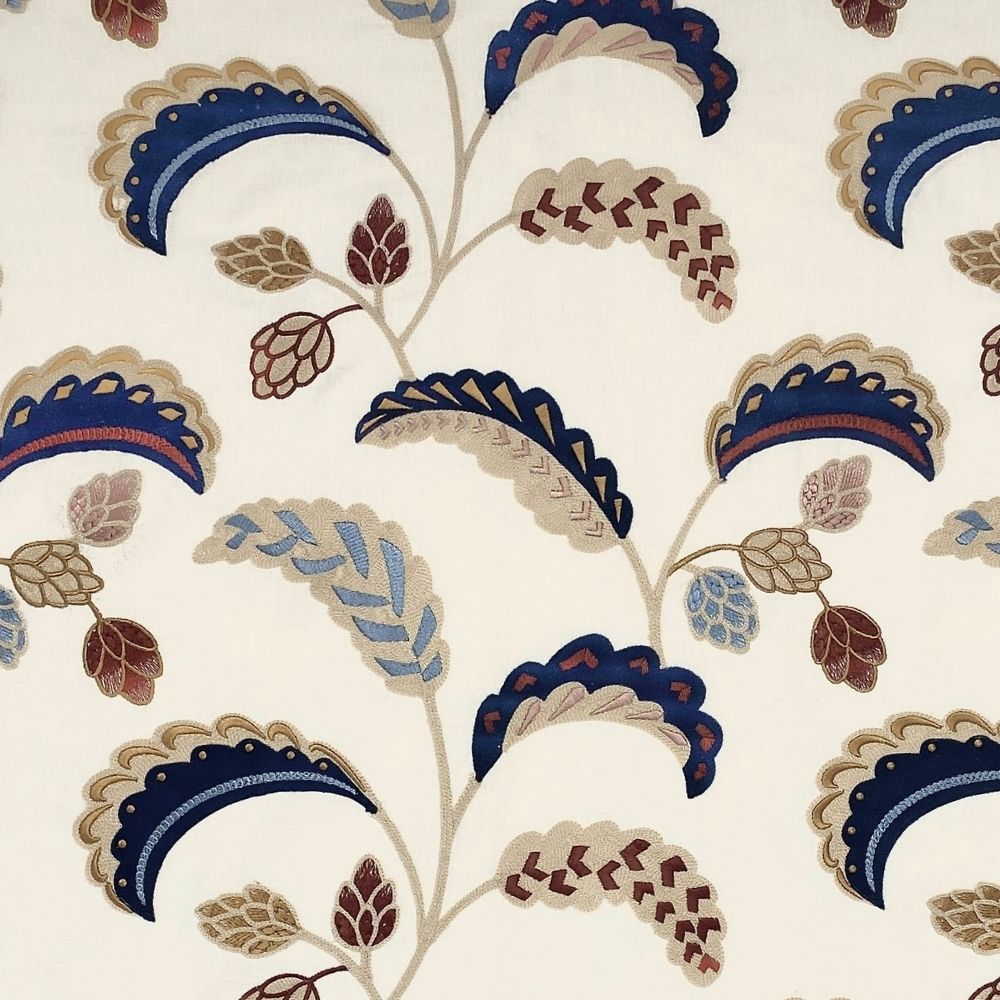 Palm Wave is a layered crewel work-style embroidery in stylized blocks of colour, highlighted with rayon to enhance its Deco-inspired palm leaf design. The striking and strong colours are beautifully displayed on a cotton and linen ground, offering both durability and a luxurious feel.