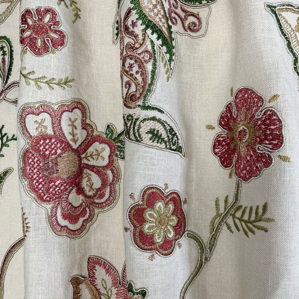 Known as “the city of poets, wine, nightingales and flowers.” This Ian Sanderson archive design was originally printed and has now been translated into embroidery with raised cording, tracing its way around the stylised leaves, stems and flowers.