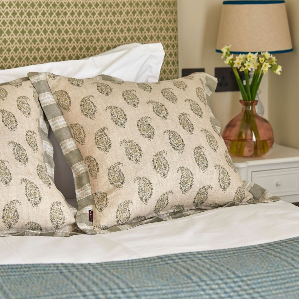 Delightful alternating paisley printed on 100% fine natural linen, available in twenty colourways, from fresh to dark, pretty to vibrant – something for every interior!