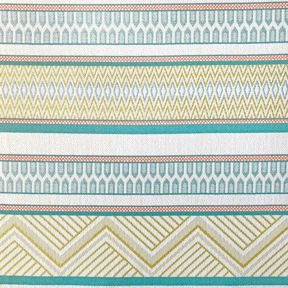 Large scale horizontal striped design – decorative performance fabric suitable for indoor and outdoor furnishings, with excellent light and colour fastness with a high rub test.