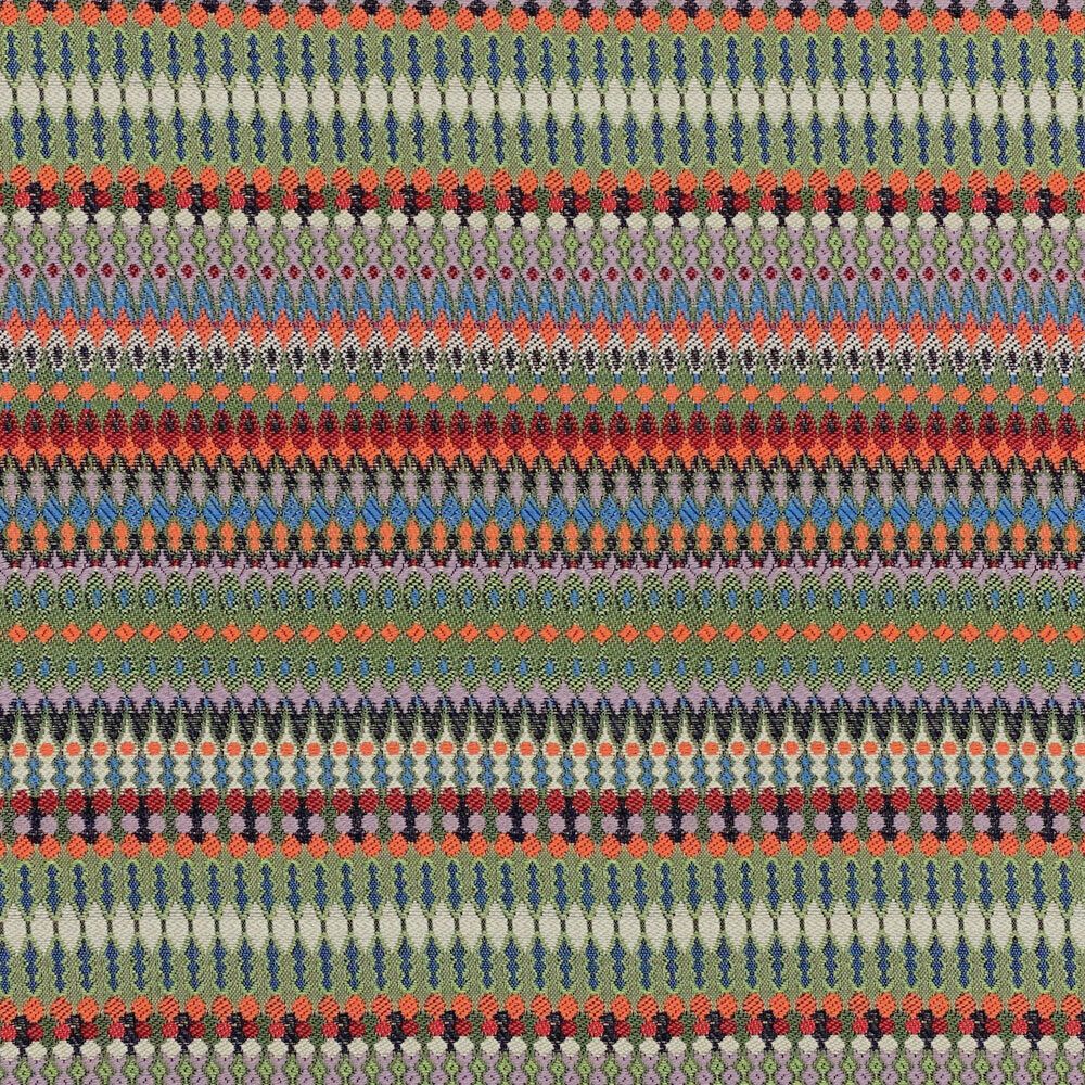 | Description: | Created by weaving together bold and subtle shades through a range of geometrical shapes in horizontal stripes |