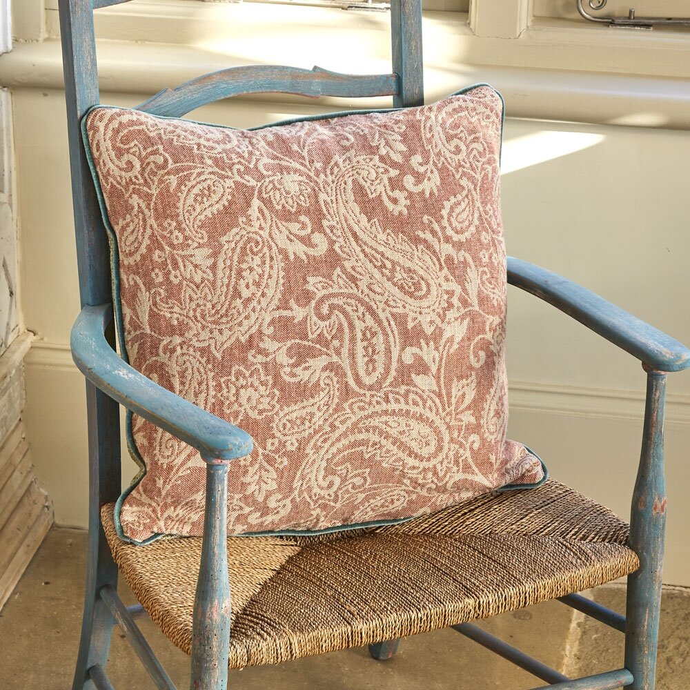 | Description: | A lovely flowing paisley design, woven with jute which gives the handle of a bouncy heavy linen. There are irregularities in the cloth which are natural for this linen design. This fabric is reversible, providing an alternative colourway when using the reverse side. |