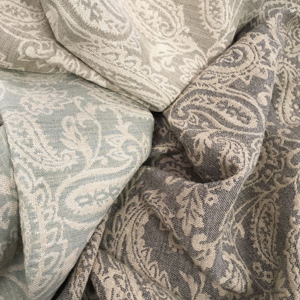 A lovely flowing paisley design, woven with jute which gives the handle of a bouncy heavy linen.