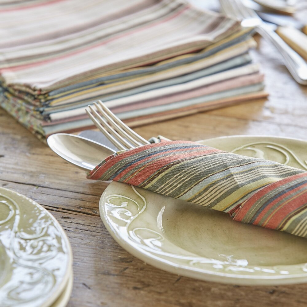 Multi-coloured stripe – a playful mix of colours in a plain weave in 100% cotton, lightly calendered