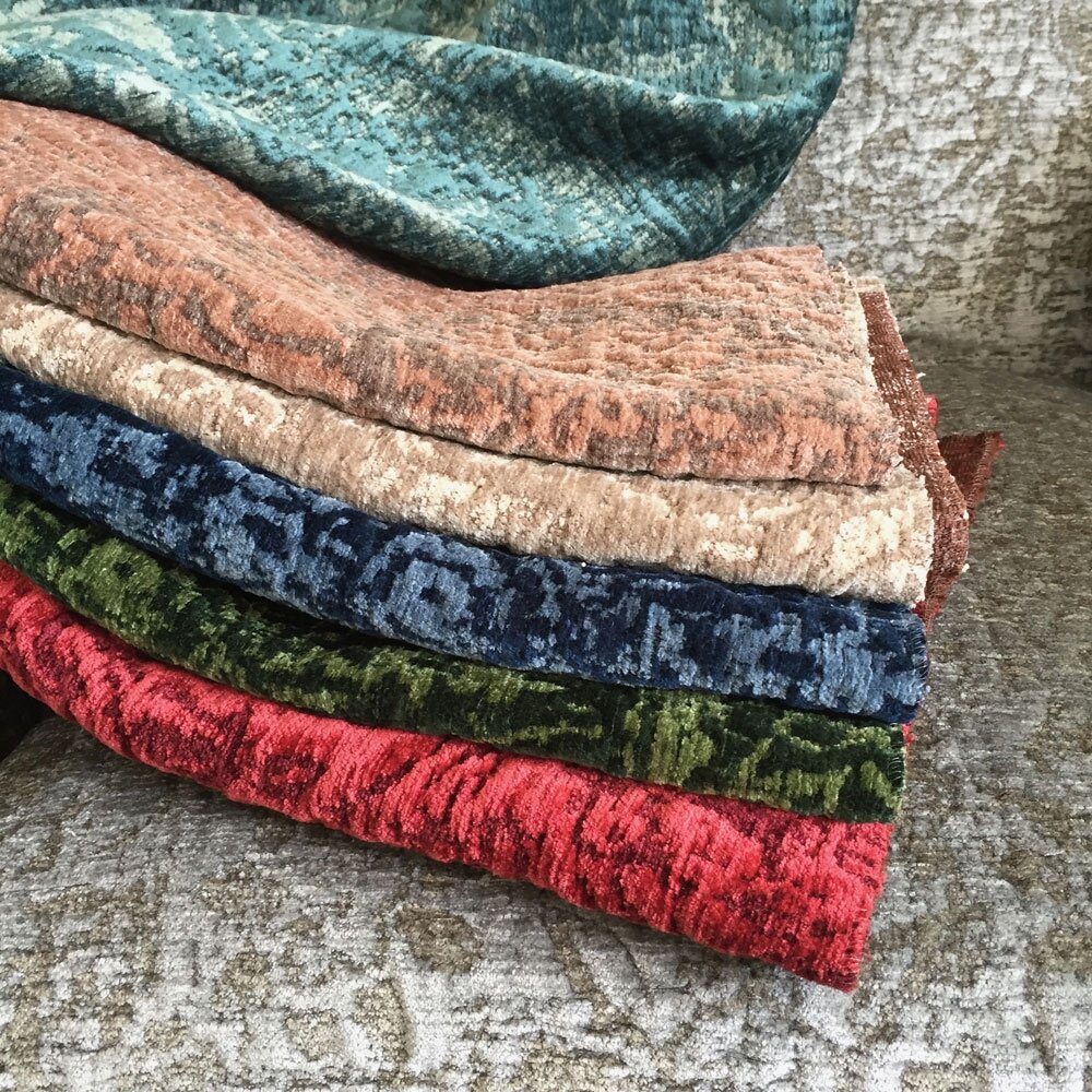 Sumptuous and opulent chenille weave with subtle medallion design in softly rippling relief.