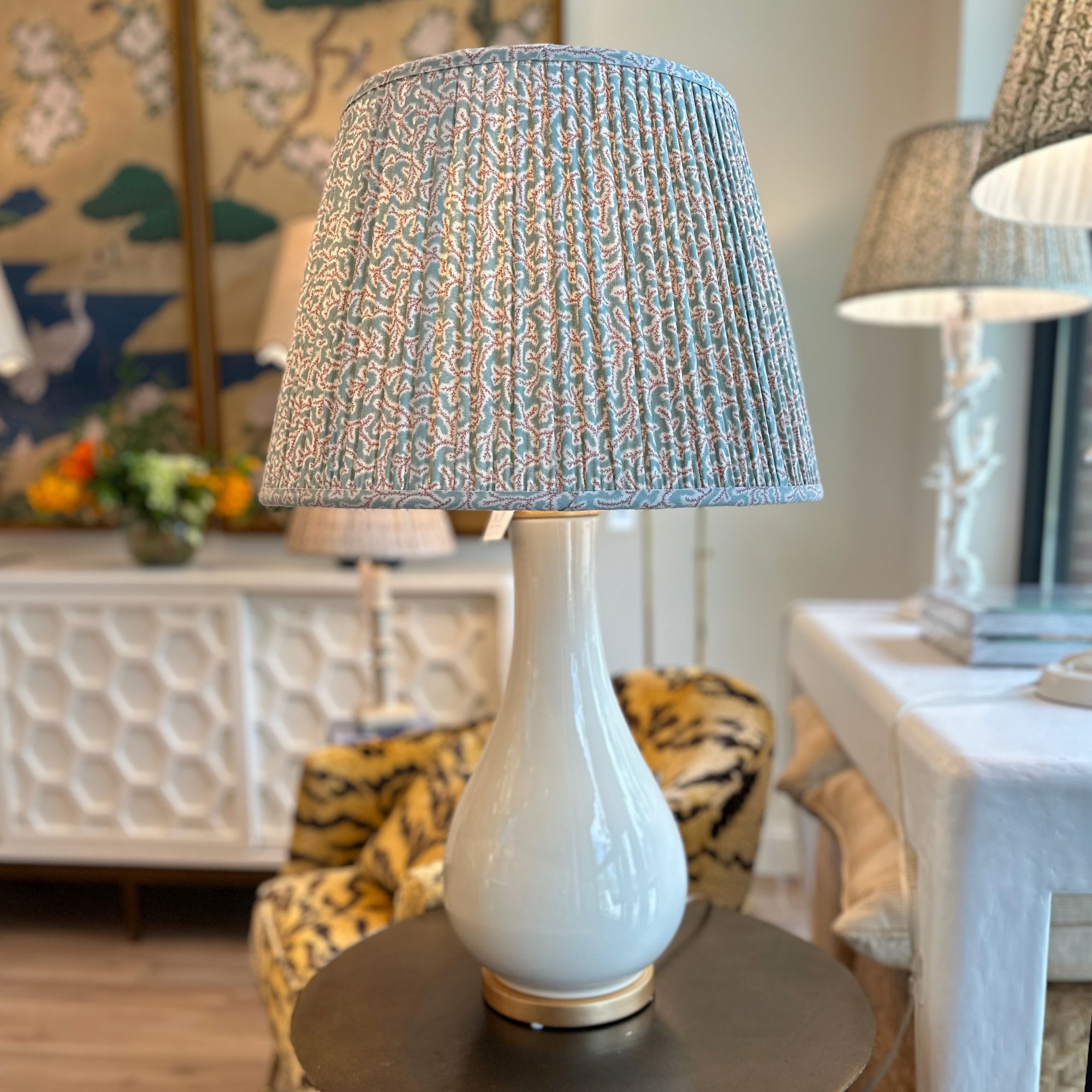 Our bespoke, hand-pleated lampshades are made to order, ensuring each piece is crafted to complement your space.